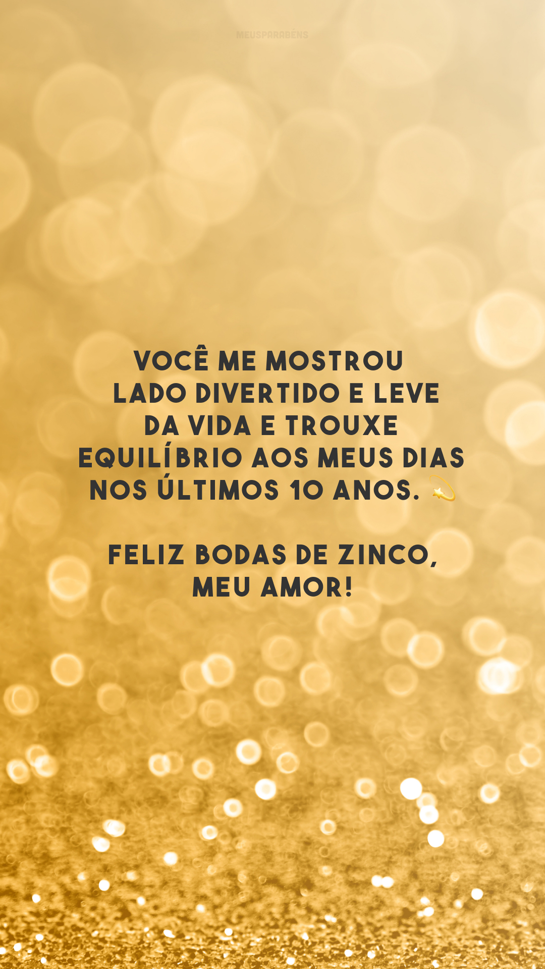 Você me mostrou o lado divertido e leve da vida e trouxe equilíbrio aos meus dias nos últimos 10 anos. 💫 Feliz bodas de zinco, meu amor!
