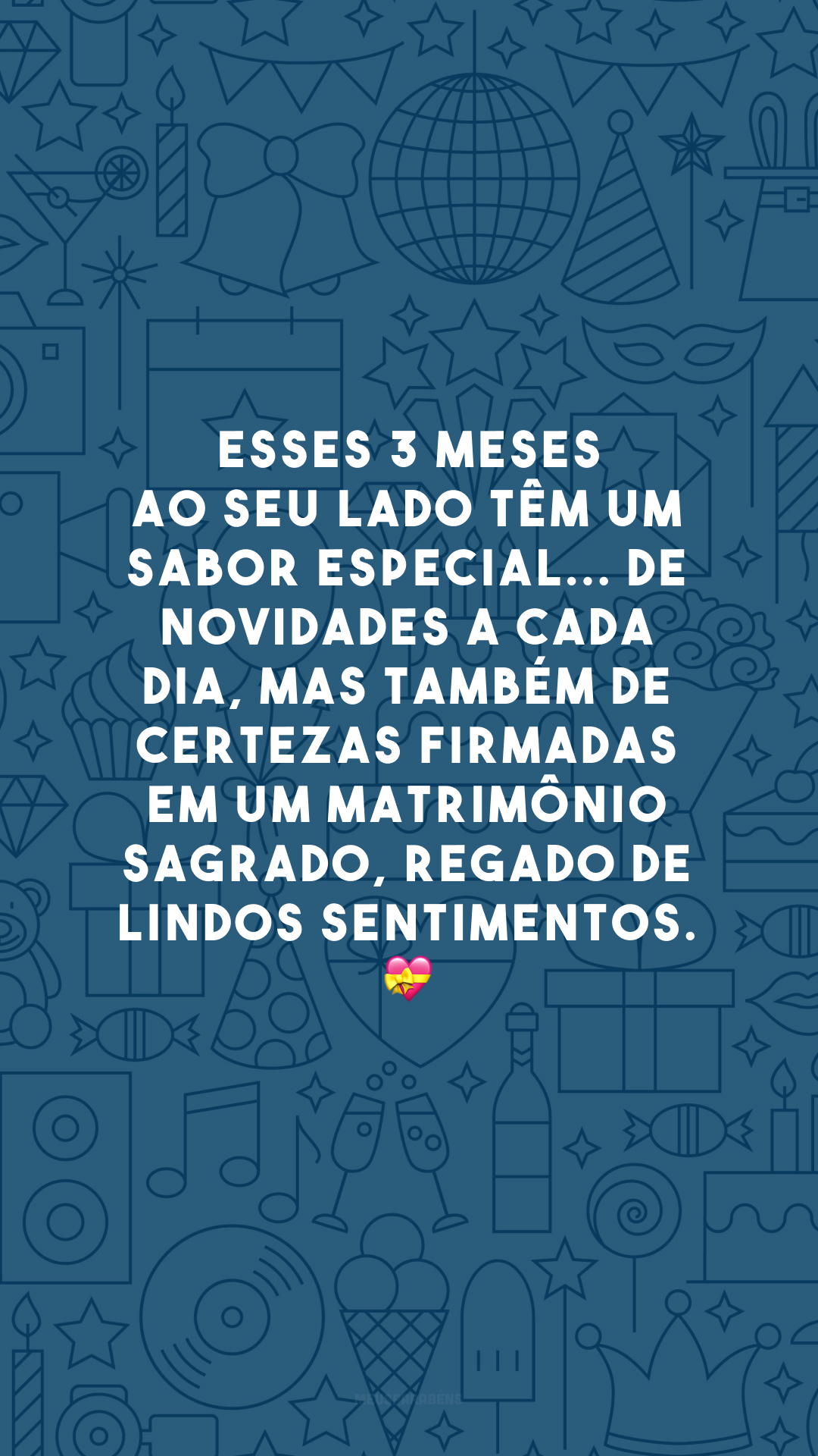 Esses 3 meses ao seu lado têm um sabor especial... De novidades a cada dia, mas também de certezas firmadas em um matrimônio sagrado, regado de lindos sentimentos. 💝