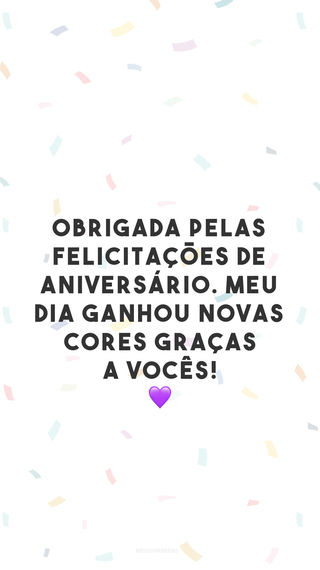 Obrigada pelas felicitações de aniversário. Meu dia ganhou novas cores graças a vocês! 💜