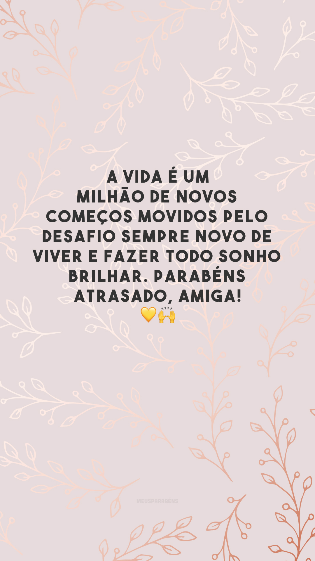 A vida é um milhão de novos começos movidos pelo desafio sempre novo de viver e fazer todo sonho brilhar. Parabéns atrasado, amiga! 💛🙌