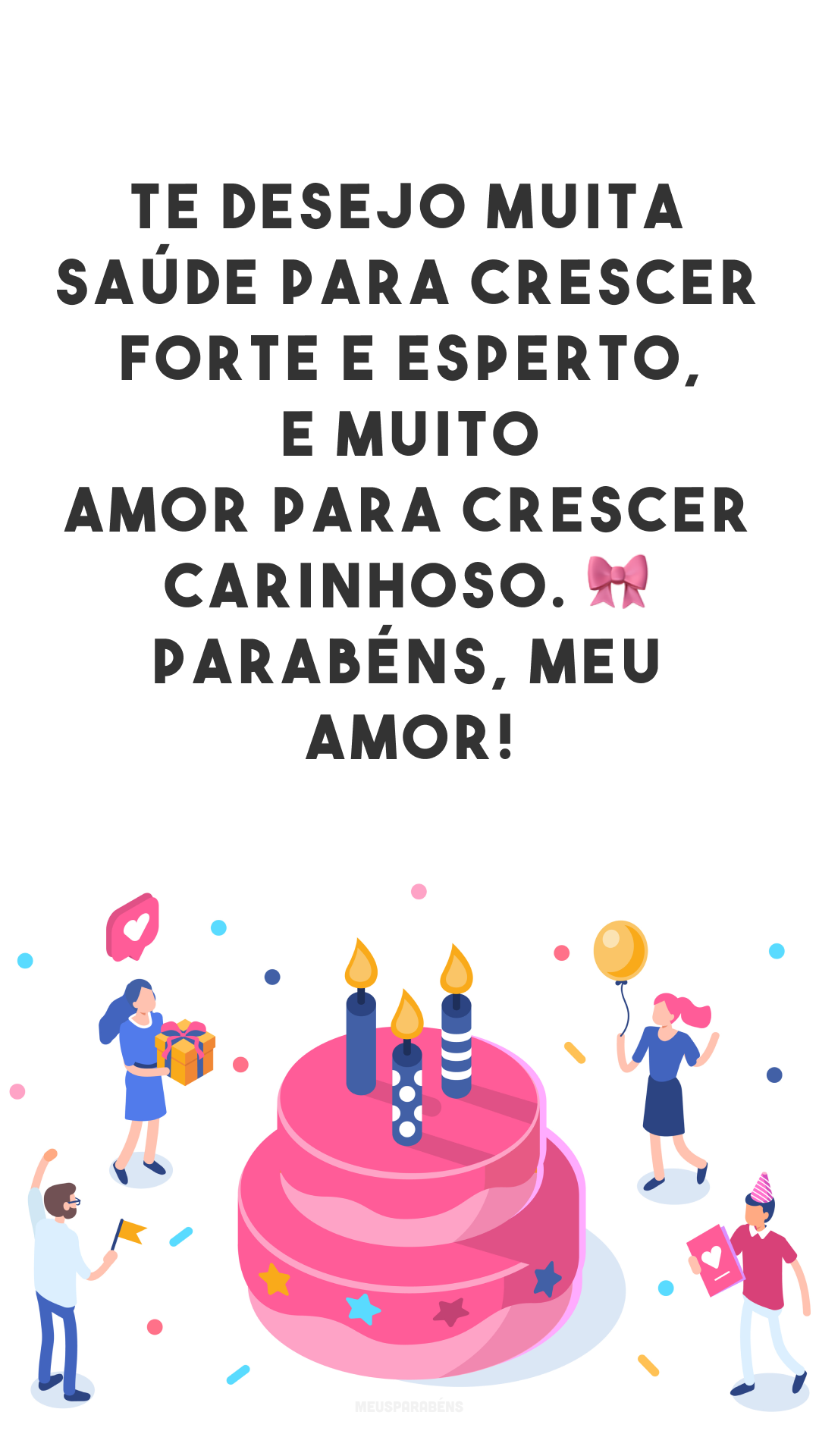 Te desejo muita saúde para crescer forte e esperto, e muito amor para crescer carinhoso. 🎀 Parabéns, meu amor!