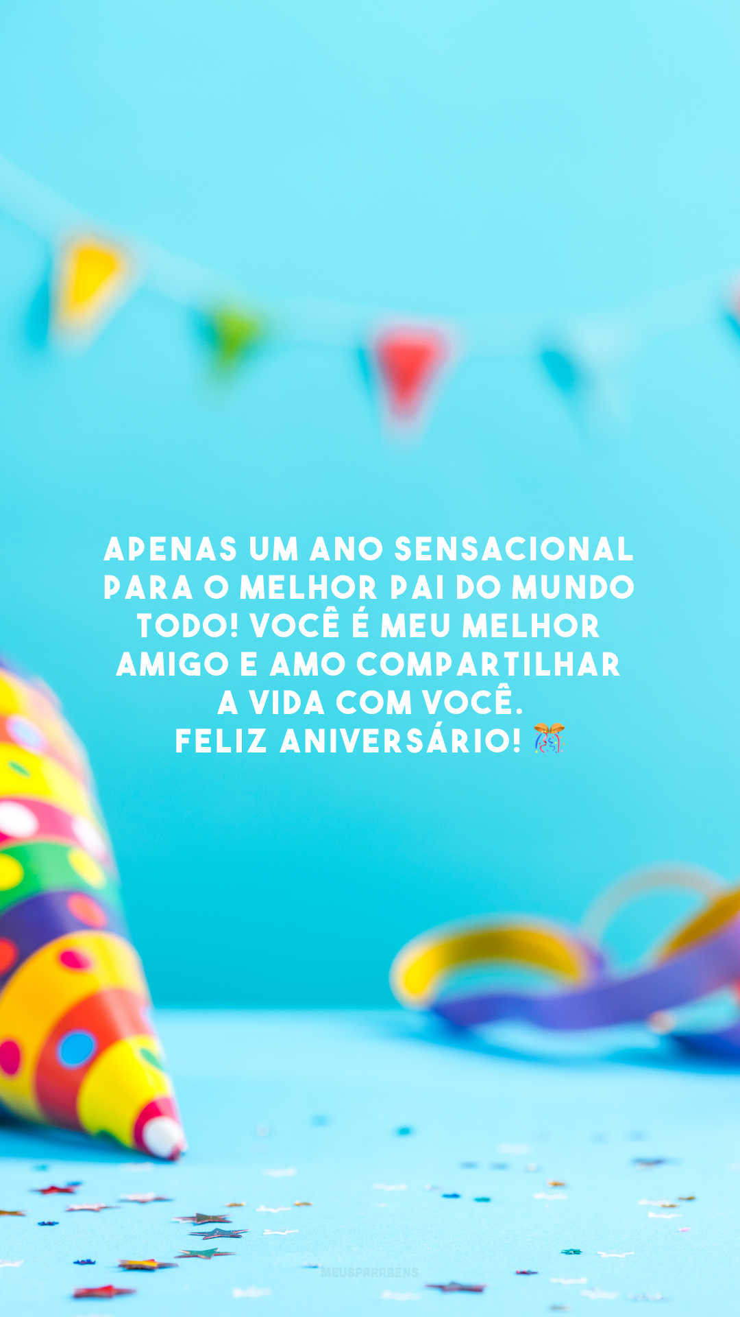 Apenas um ano sensacional para o melhor pai do mundo todo! Você é meu melhor amigo e amo compartilhar a vida com você. Feliz aniversário! 🎊