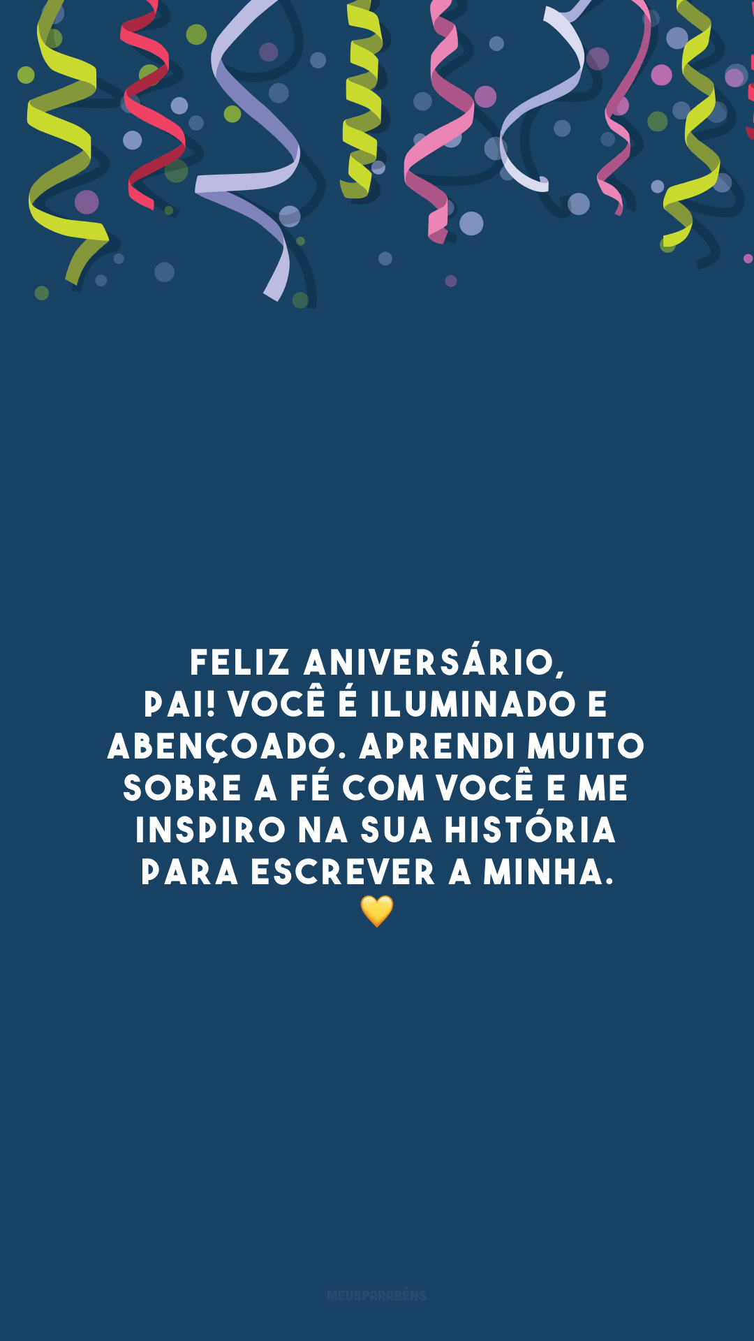 Feliz aniversário, pai! Você é iluminado e abençoado. Aprendi muito sobre a fé com você e me inspiro na sua história para escrever a minha. 💛