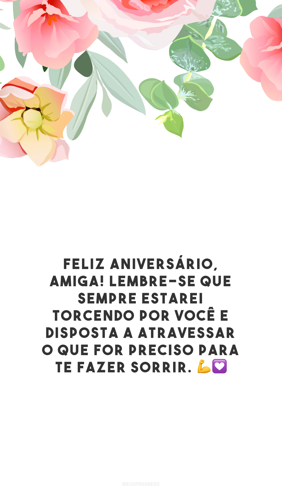 Feliz aniversário, amiga! Lembre-se que sempre estarei torcendo por você e disposta a atravessar o que for preciso para te fazer sorrir. 💪💟