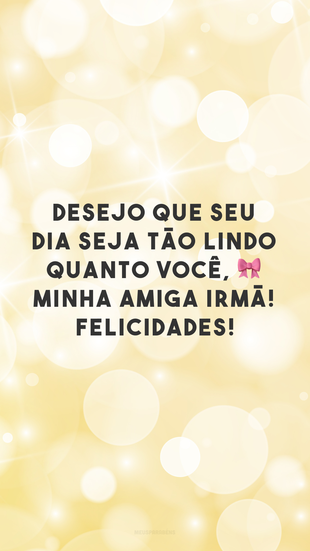 Desejo que seu dia seja tão lindo quanto você, 🎀 minha amiga irmã! Felicidades!