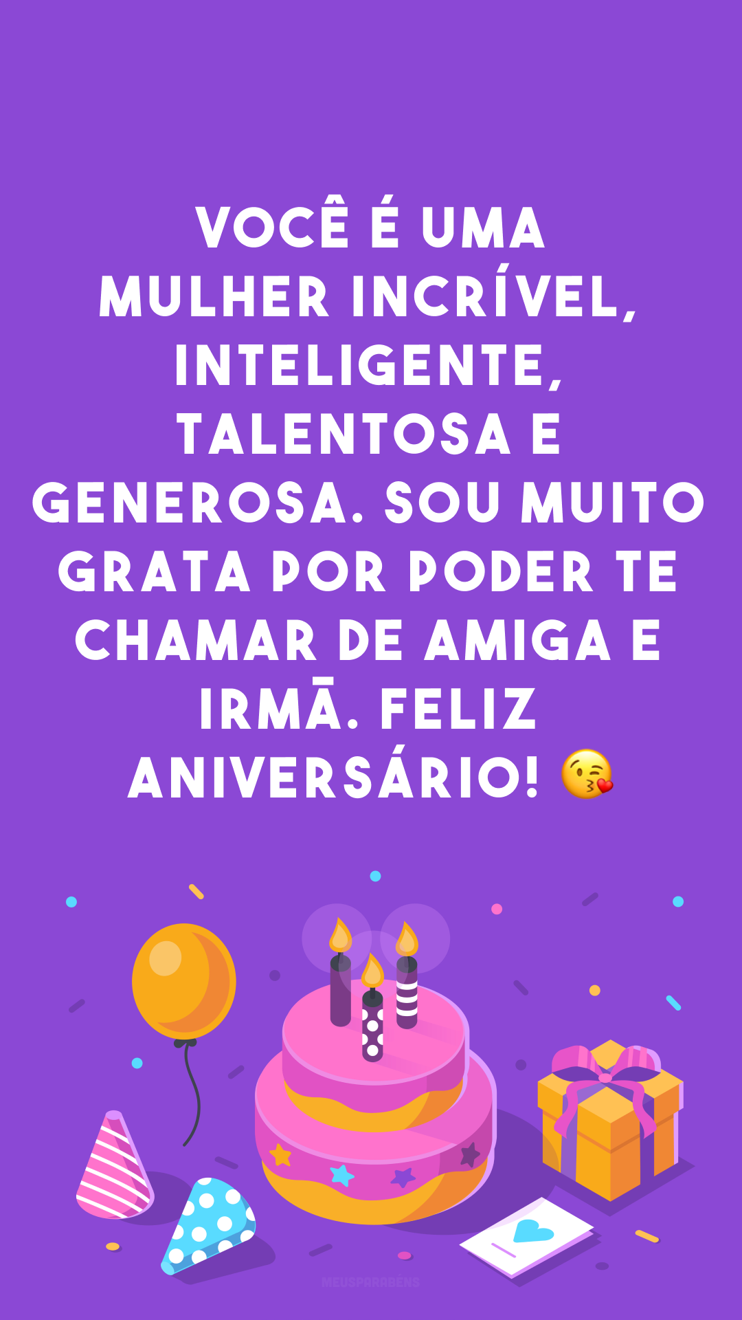 No meu coração, você é minha irmã, amiga! 🎂 Te desejo toda a felicidade do mundo!