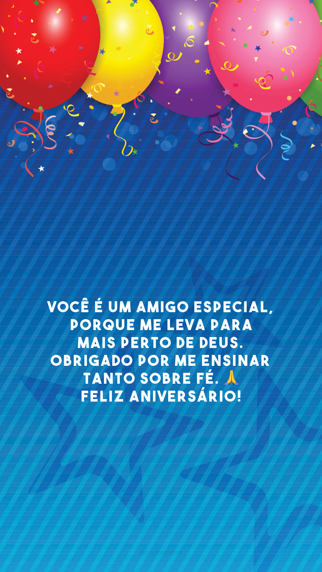 Você é um amigo especial, porque me leva para mais perto de Deus. Obrigado por me ensinar tanto sobre fé. 🙏 Feliz aniversário!