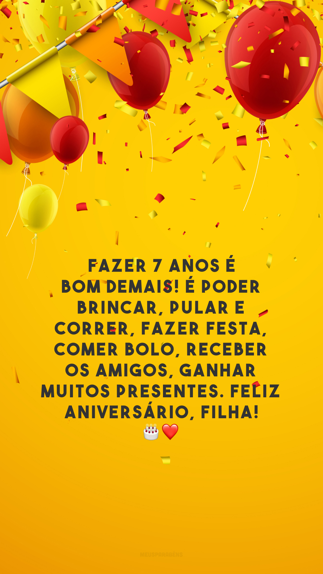 Fazer 7 anos é bom demais! É poder brincar, pular e correr, fazer festa, comer bolo, receber os amigos, ganhar muitos presentes. Feliz aniversário, filha! 🎂❤️