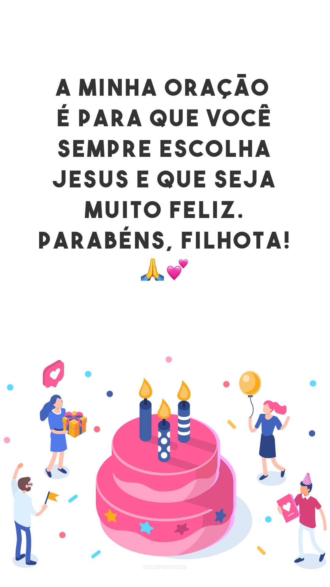 A minha oração é para que você sempre escolha Jesus e que seja muito feliz. Parabéns, filhota! 🙏💕
