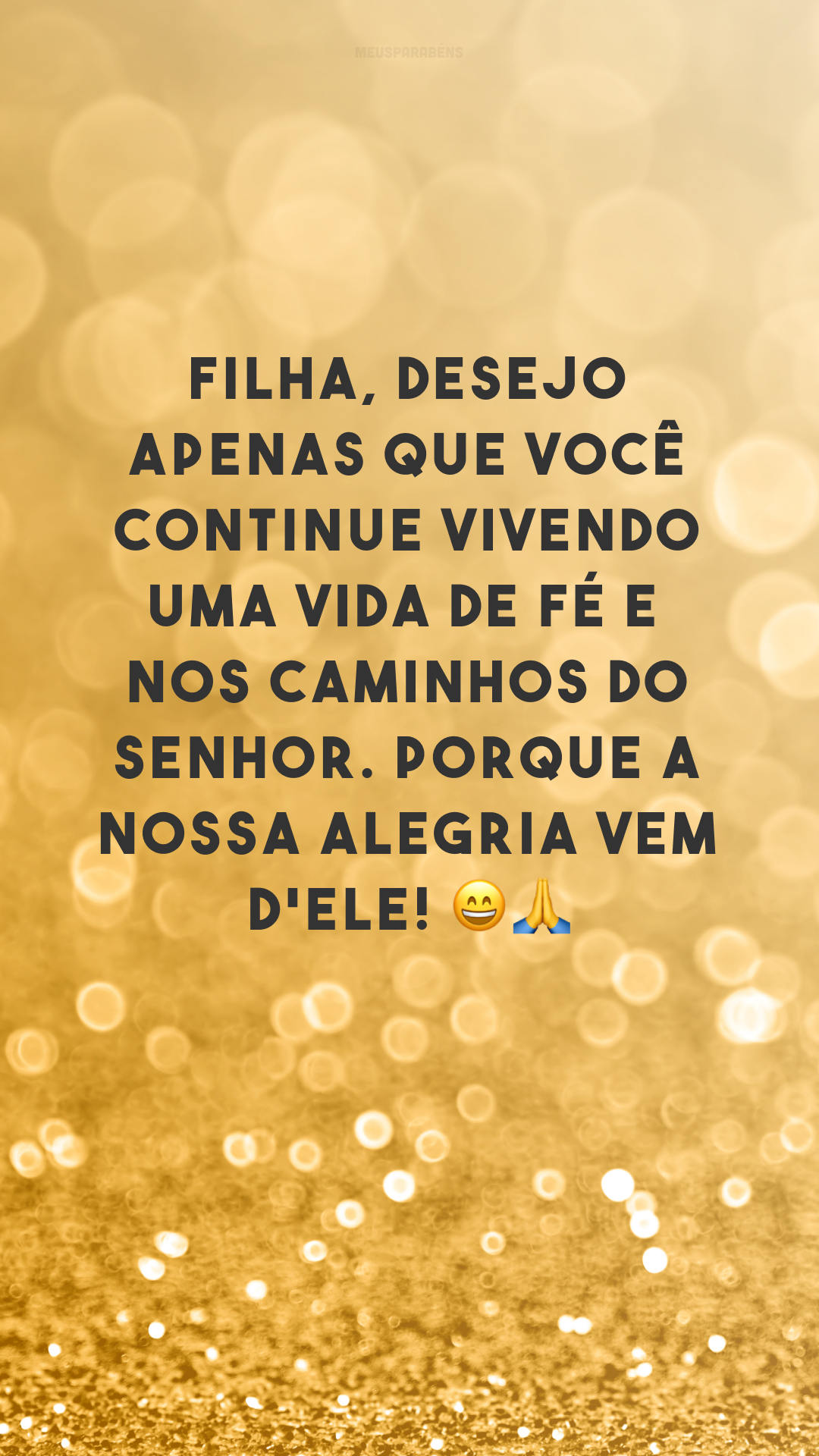 Filha, desejo apenas que você continue vivendo uma vida de fé e nos caminhos do Senhor. Porque a nossa alegria vem d'Ele! 😄🙏