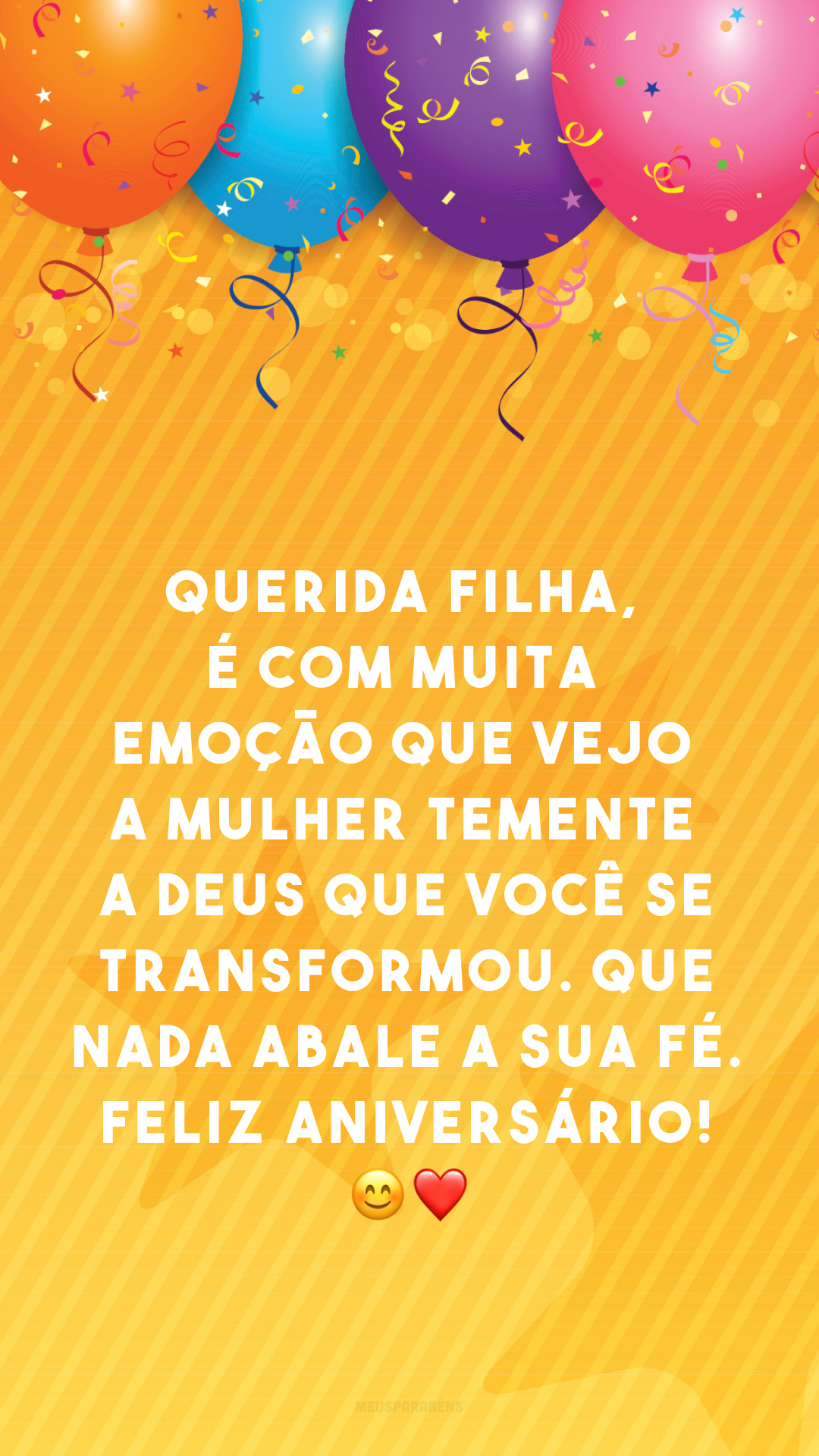 Querida filha, é com muita emoção que vejo a mulher temente a Deus que você se transformou. Que nada abale a sua fé. Feliz aniversário! 😊❤