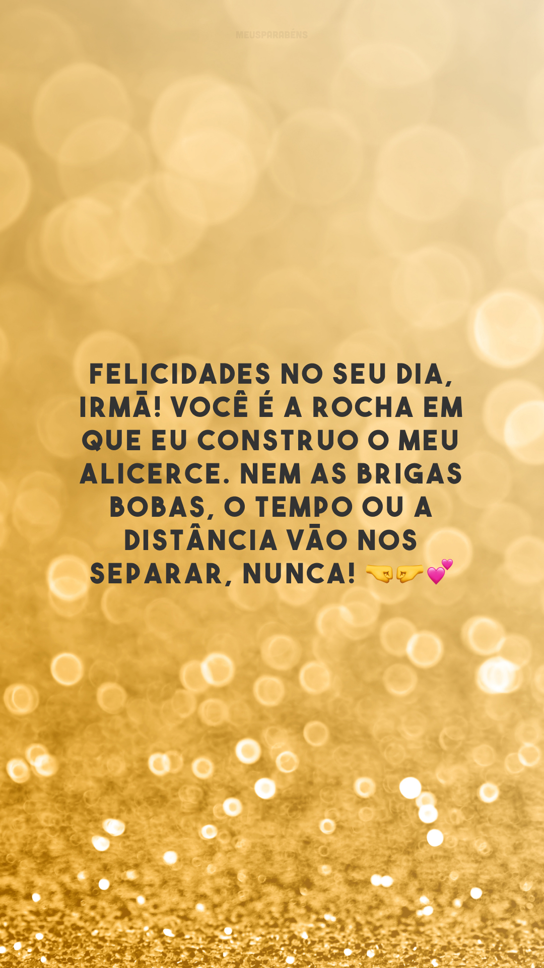 Felicidades no seu dia, irmã! Você é a rocha em que eu construo o meu alicerce. Nem as brigas bobas, o tempo ou a distância vão nos separar, nunca! 🤜🤛💕
