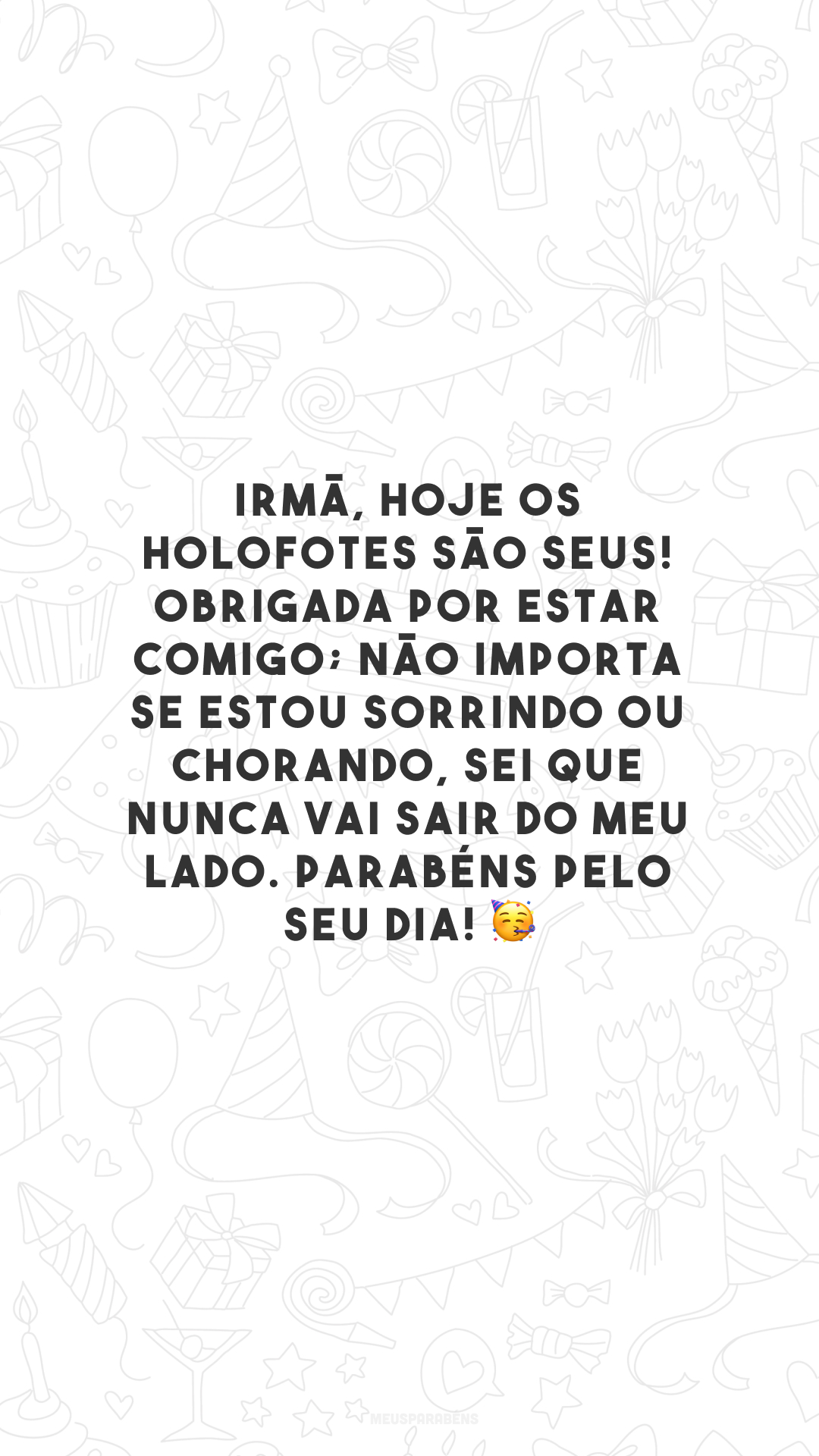 Irmã, hoje os holofotes são seus! Obrigada por estar comigo; não importa se estou sorrindo ou chorando, sei que nunca vai sair do meu lado. Parabéns pelo seu dia! 🥳