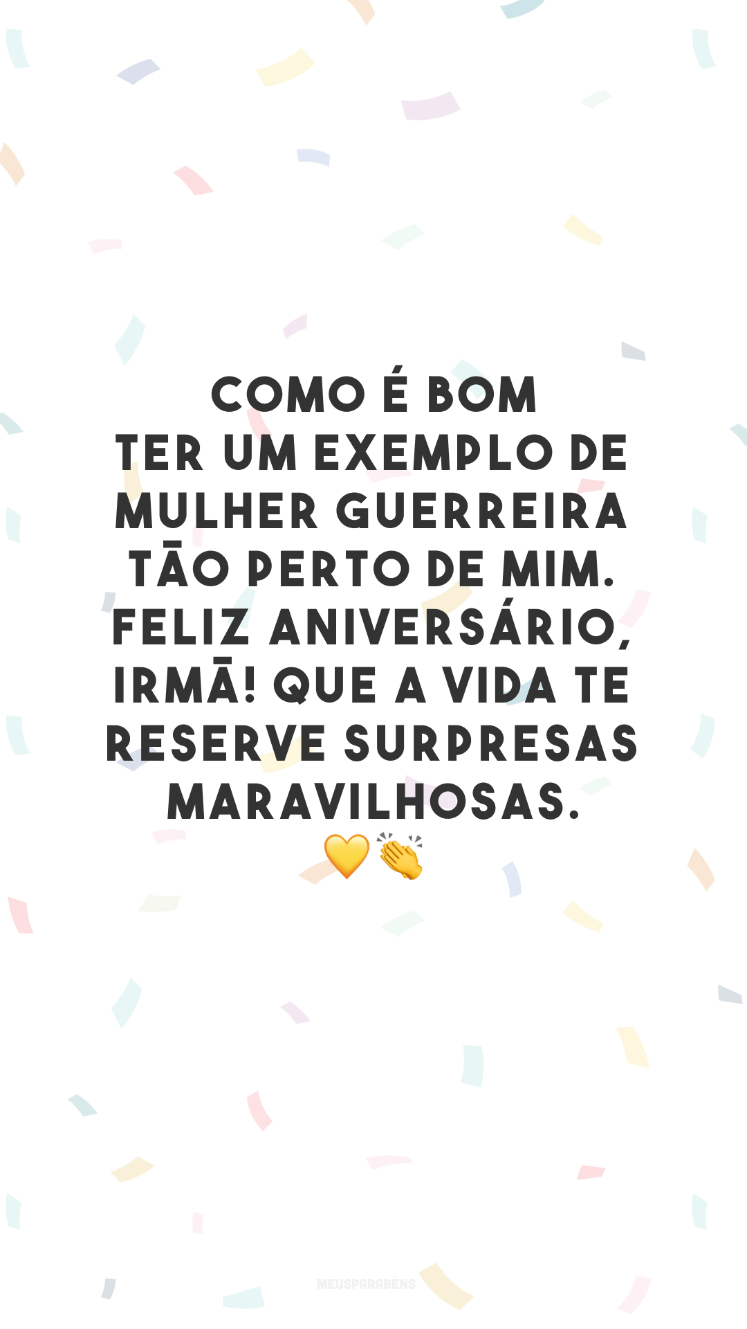 Como é bom ter um exemplo de mulher guerreira tão perto de mim. Feliz aniversário, irmã! Que a vida te reserve surpresas maravilhosas. 💛👏