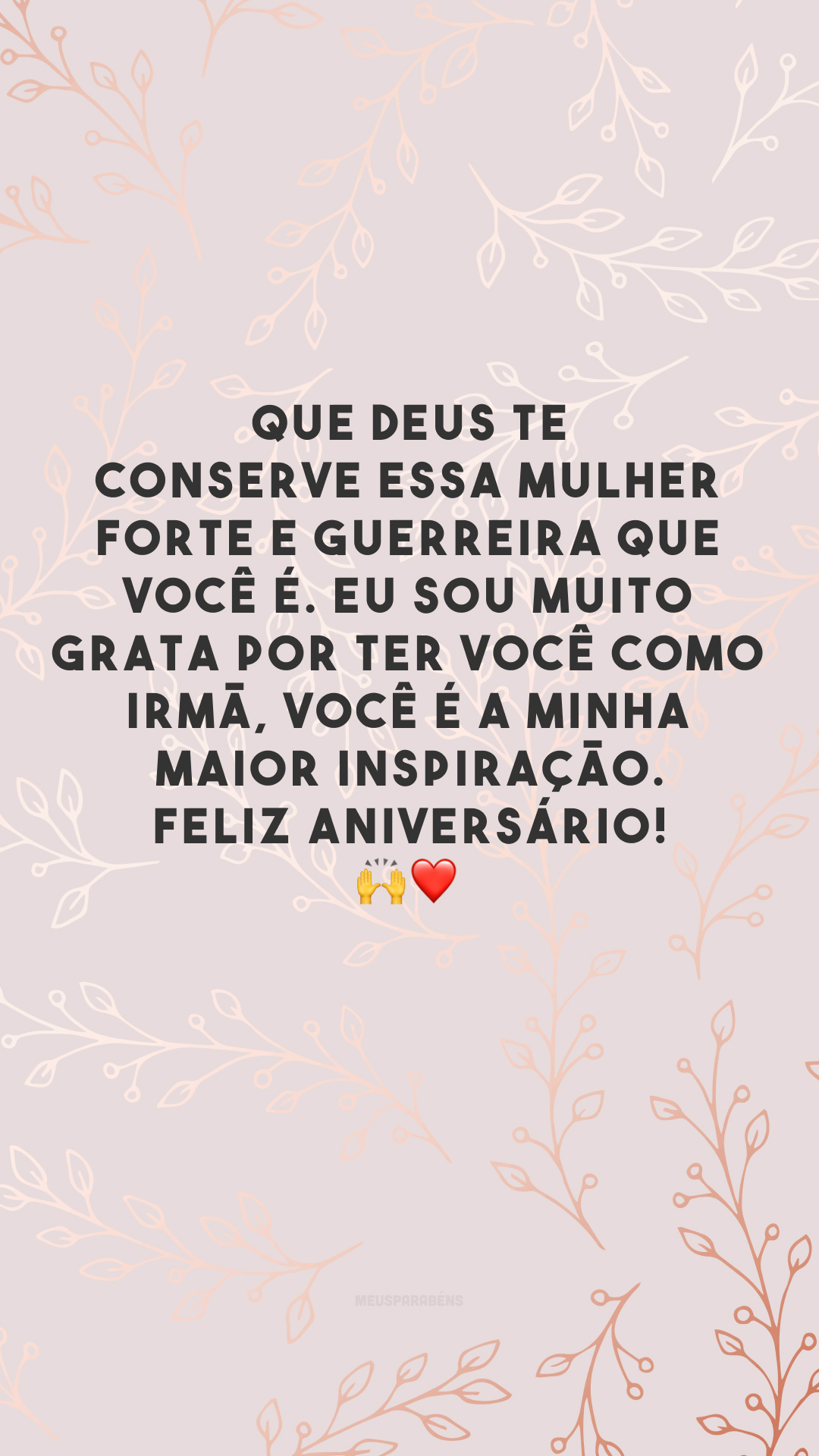 Que Deus te conserve essa mulher forte e guerreira que você é. Eu sou muito grata por ter você como irmã, você é a minha maior inspiração. Feliz aniversário! 🙌❤️