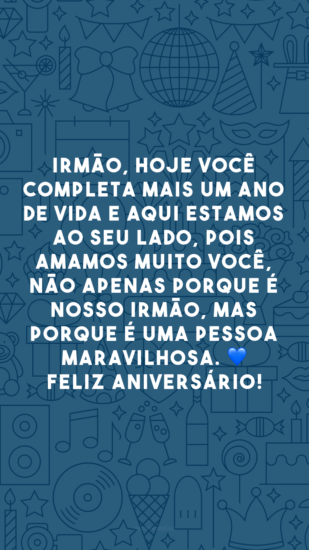 Irmão, hoje você completa mais um ano de vida e aqui estamos ao seu lado, pois amamos muito você, não apenas porque é nosso irmão, mas porque é uma pessoa maravilhosa. 💙 Feliz aniversário!