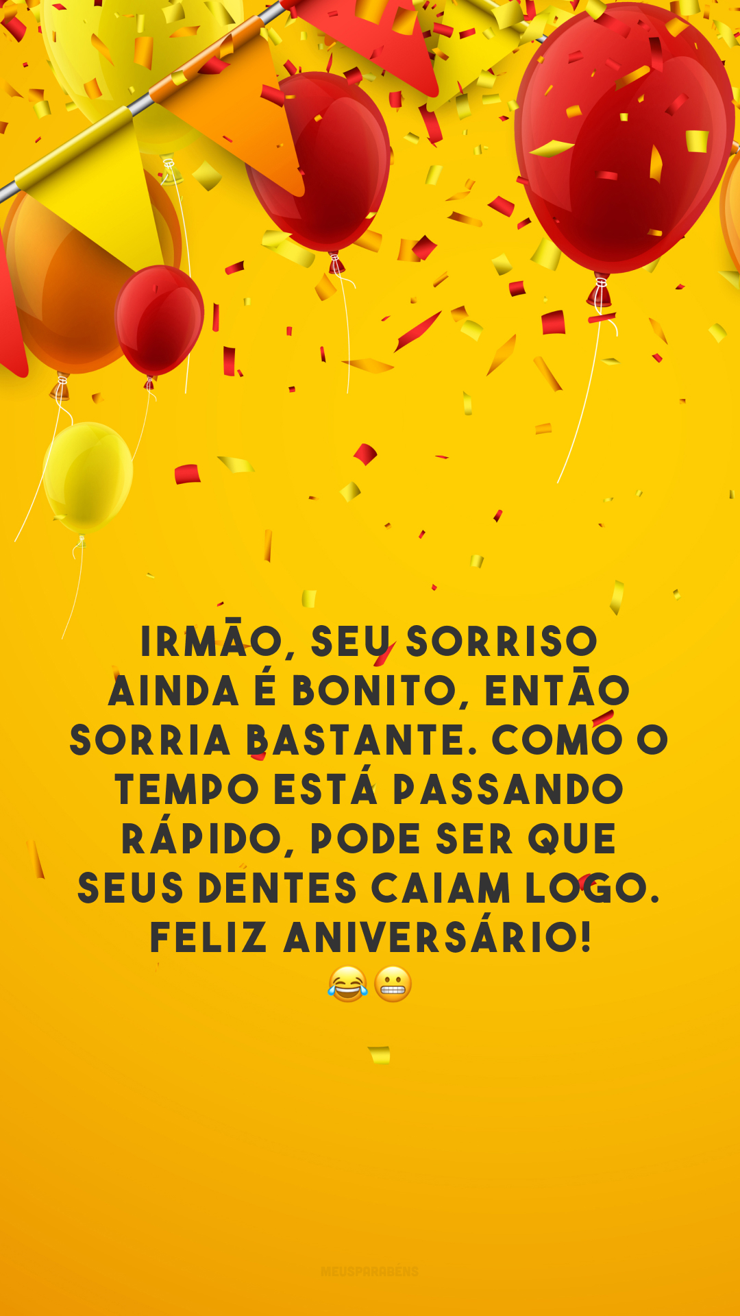 Irmão, seu sorriso ainda é bonito, então sorria bastante. Como o tempo está passando rápido, pode ser que seus dentes caiam logo. Feliz aniversário! 😂😬