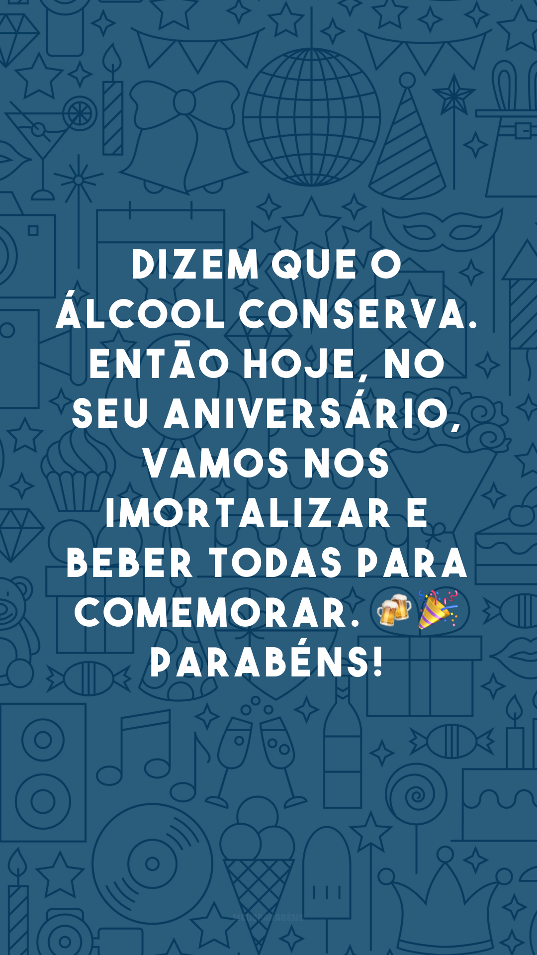 Dizem que o álcool conserva. Então hoje, no seu aniversário, vamos nos imortalizar e beber todas para comemorar. 🍻🎉 Parabéns!