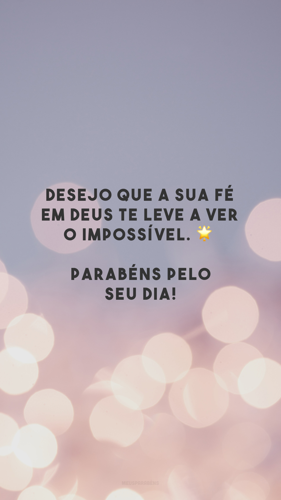 Desejo que a sua fé em Deus te leve a ver o impossível. 🌟 Parabéns pelo seu dia!