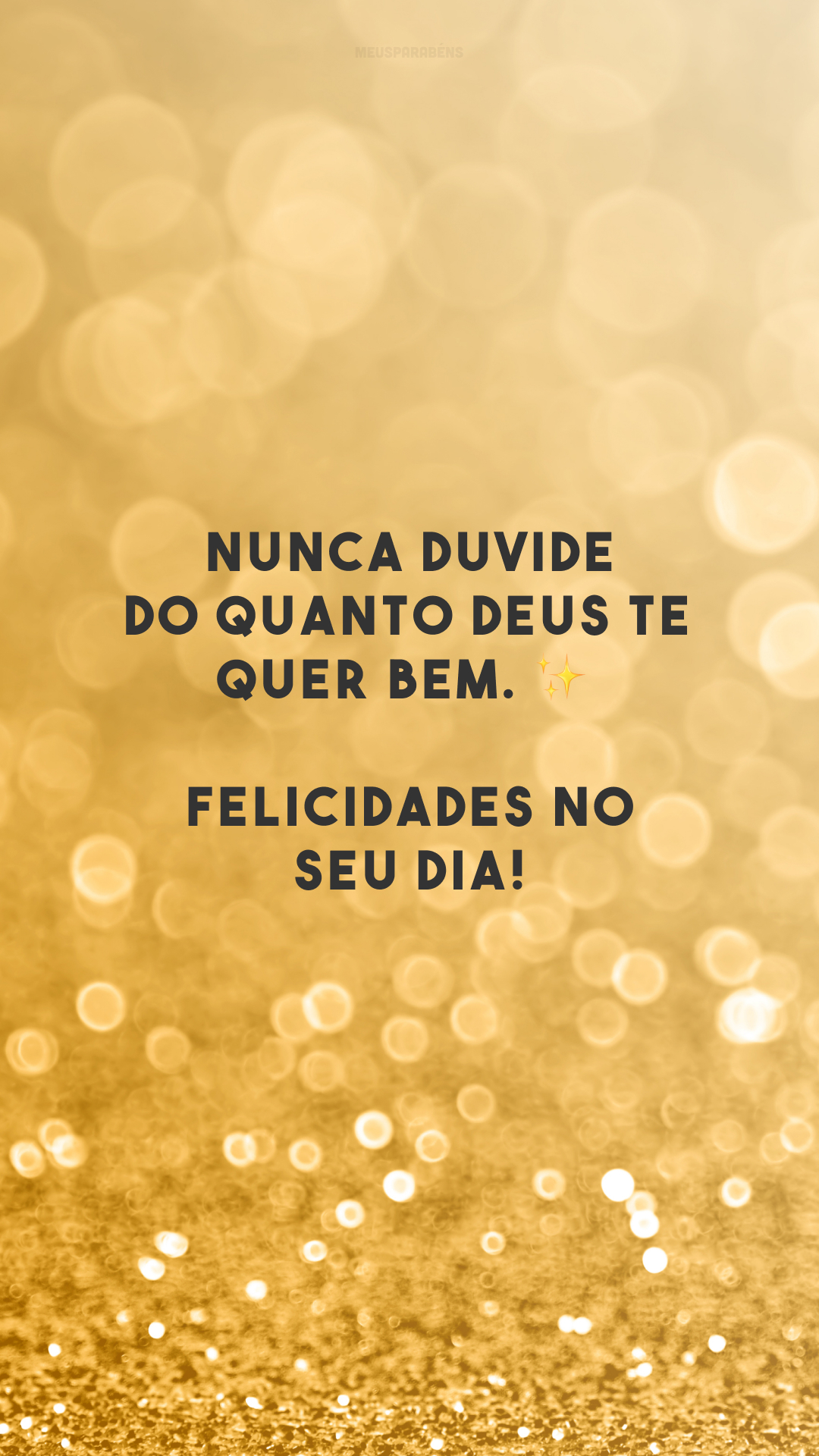 Nunca duvide do quanto Deus te quer bem. ✨ Felicidades no seu dia!