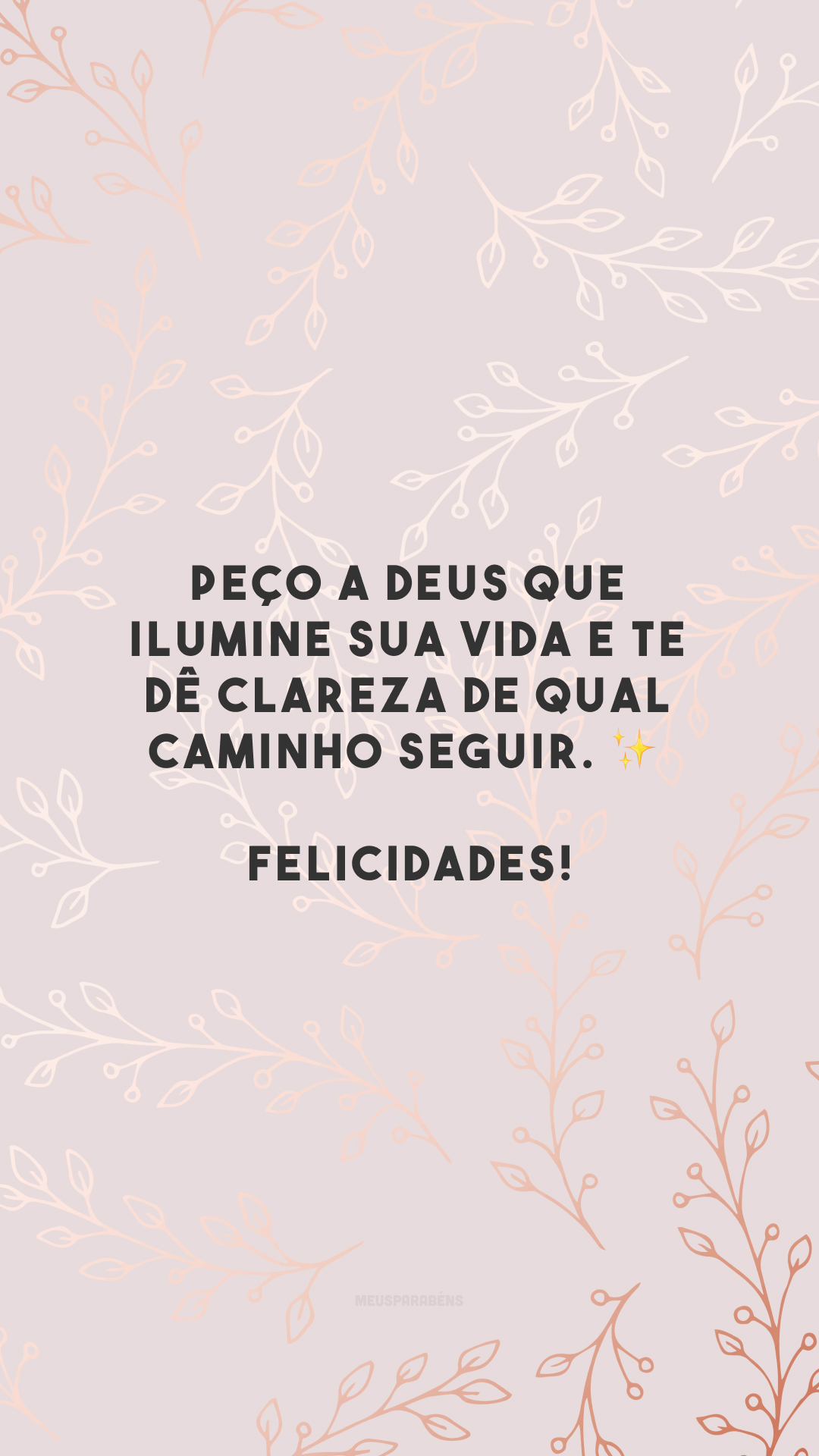 Peço a Deus que ilumine sua vida e te dê clareza de qual caminho seguir. ✨ Felicidades!